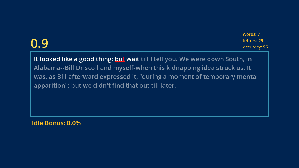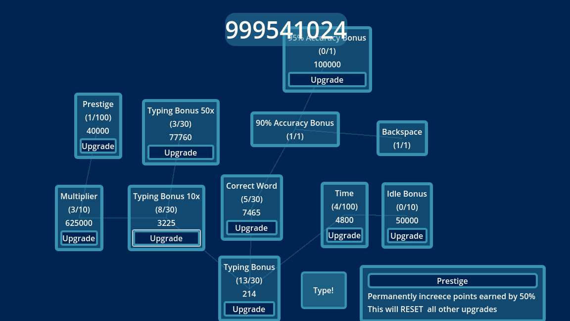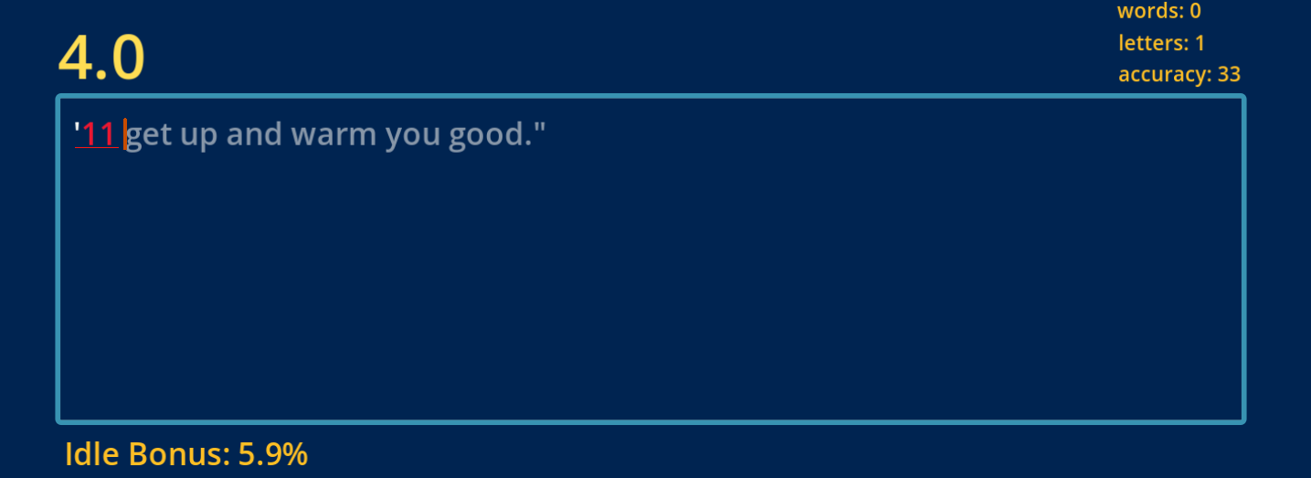 Type as many letters you can for 5 seconds. For each letter you type, you get a point. Use your points to buy upgrades so you can earn more points.