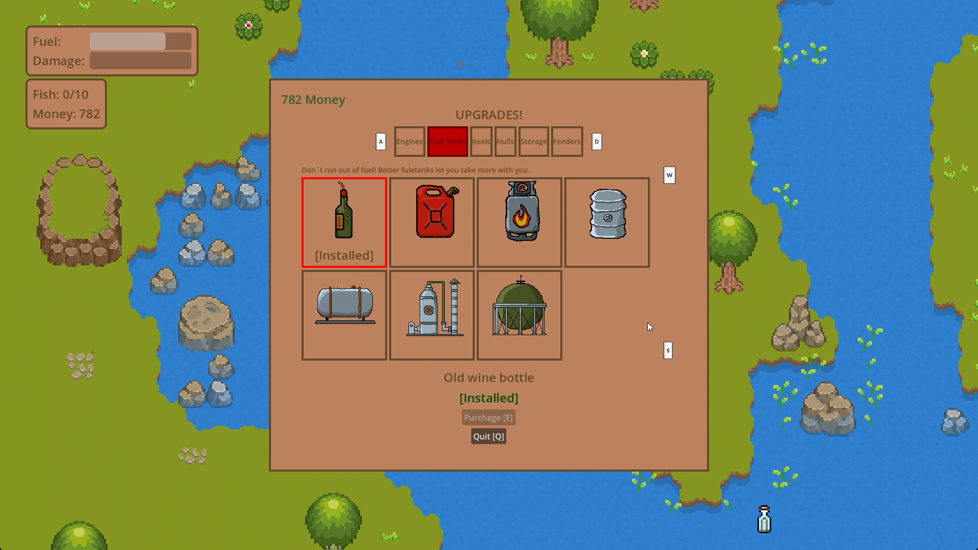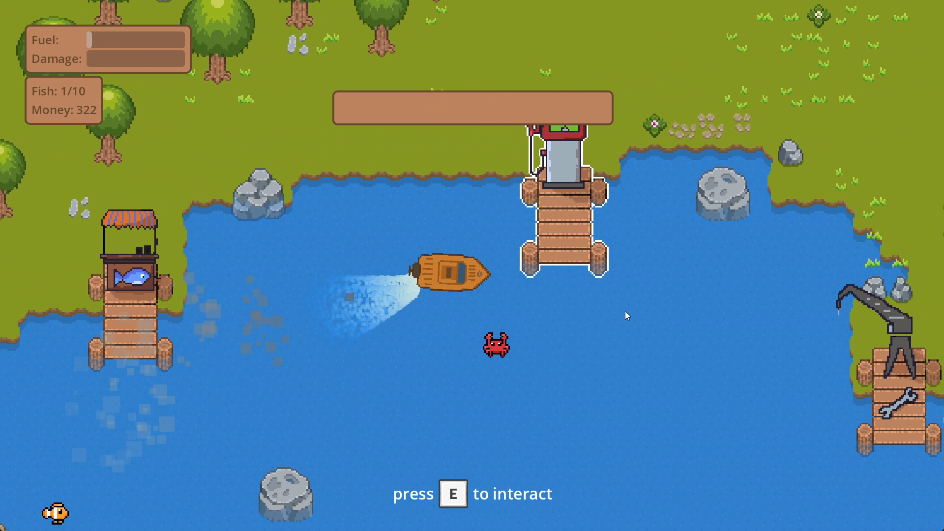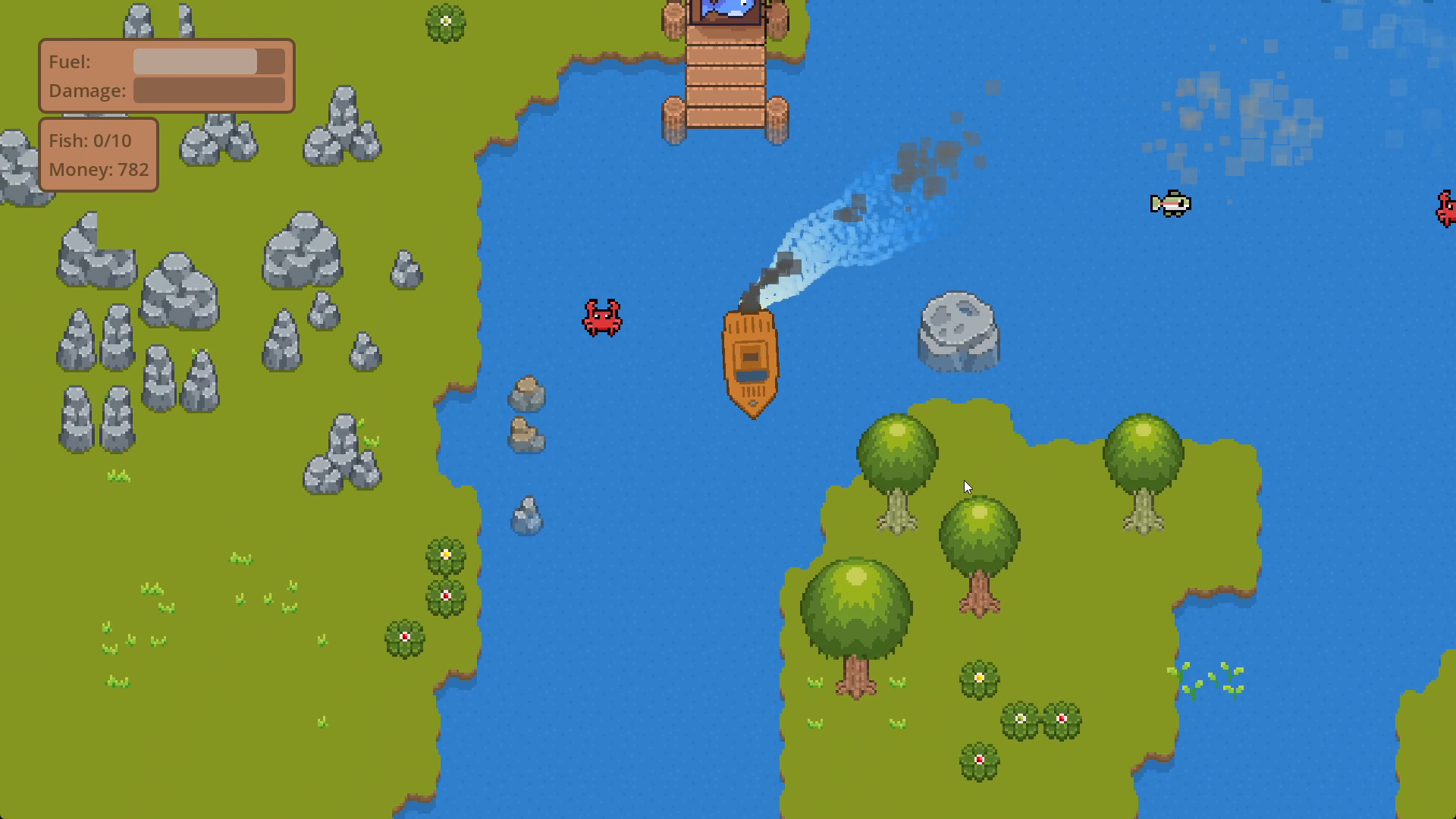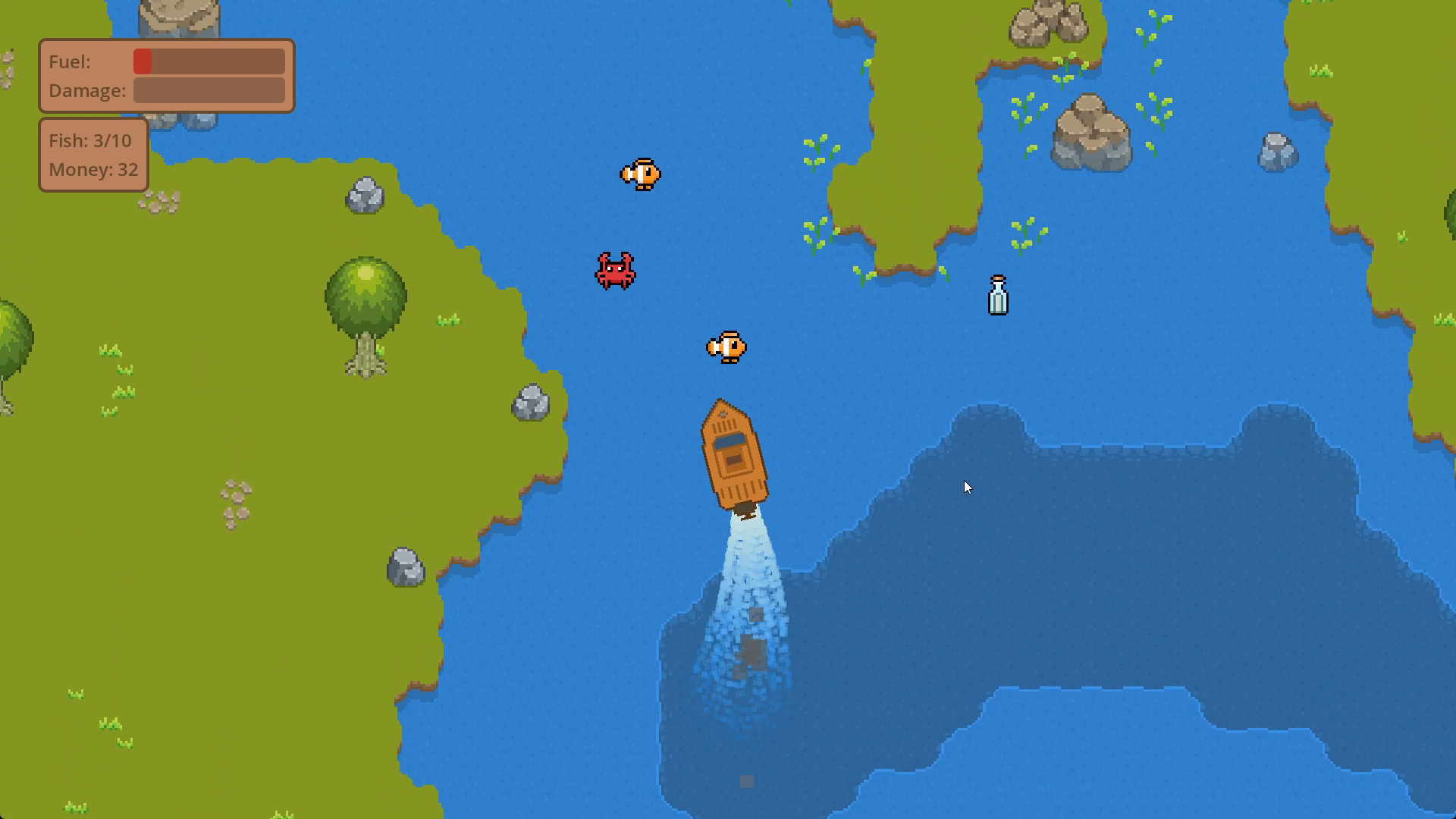 Drive a fast boat around inside a fjord to catch fish. Sell the fish to buy fuel. Never run out of fuel, then you can't get back. Spend your surplus money on upgrades that allow you to go farther out in the fjord where the more valuable fishes lives.